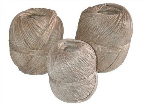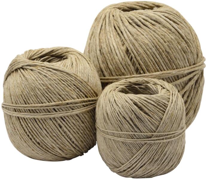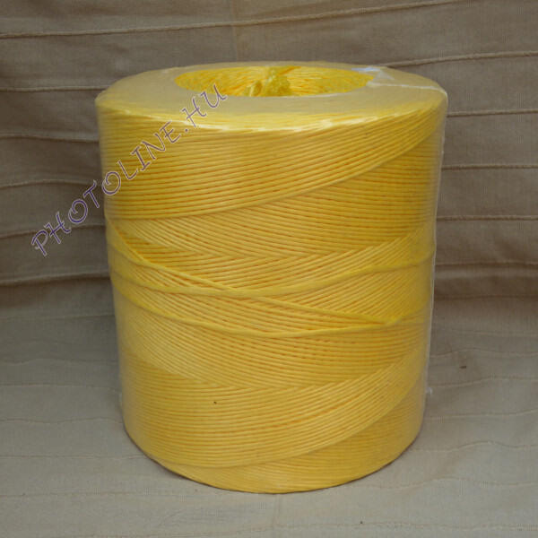Nagyméretű keresztorsón fehér színű polipropilén zsineg. Kiadósság: 600 m / kg. Szakítóerő: 70-100 kg. UV-álló madzag.