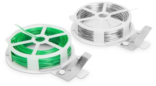 Könnyen adagolható, fémhuzal szett, melyek közül az egyik műanyag védőborítással is rendelkezik, így méginkább ellenáll az időjárás viszontagságainak. Ideális lehet növények kötözésénél, kreatív hobbitevékenységeknél. A tekercsek mellett található vágókésekkel könnyen tetszőleges mennyiség levágható. Időjárásálló M anyag borítás Könnyen vágható Id