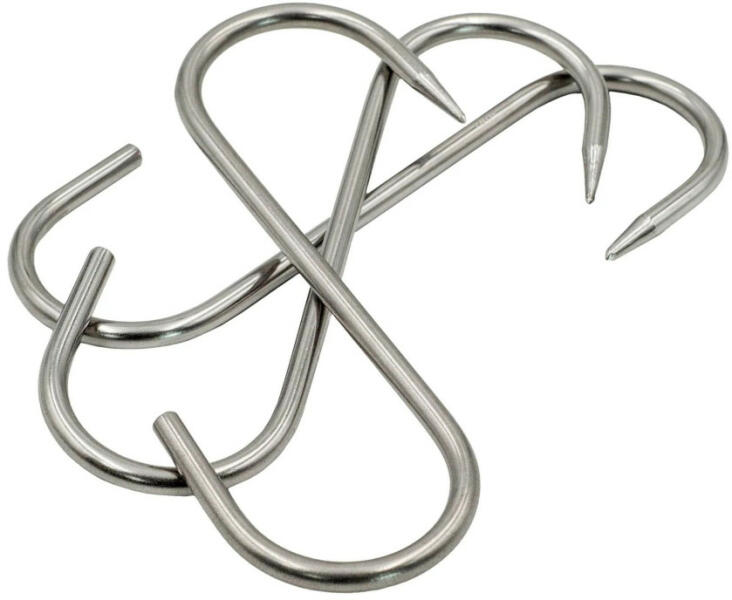 Rozsdamentes acélból készült húskampó Mérete: 160mm hosszú, 6mm vastag Strapabíró, masszív kivitel Kézi mosogatás ajánlott A feltüntetett ár 1db-ra vonatkozik Kiválóan alkalmas húsok akasztásához a kamrában. Az akasztáshoz akasztúfül vagy kötözőzsineg használata szükséges a termék előállítása során. Húskampó "S" 160/6 tulajdonságai: A Dick márkájú húskam