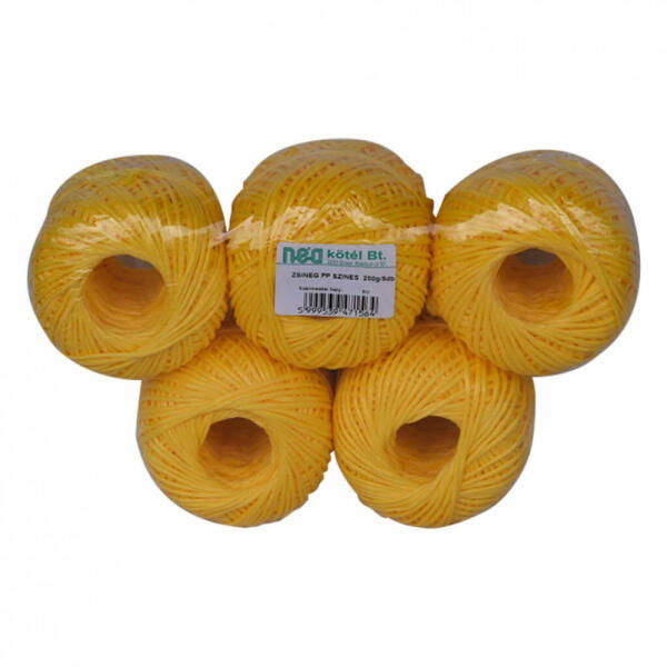 0,2 kg-os, polipropilén (PP) alapanyagból készült sárga színű zsineg. Kiszerelés: 200 grammos gombolyag Kiadóssága: 600 m/kg Szakítóereje: 47 kg Az ár 1db-ra vonatkozik!