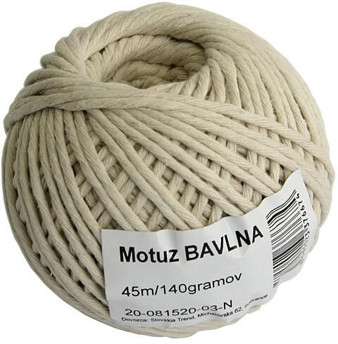 * Leírás: Gyertyakészítéshez, vagy univerzális célra vékony zsinór. * Jellemzők: - Származás: EU. - Szállítása kért méretben történik egyben. (1- 200 m).
