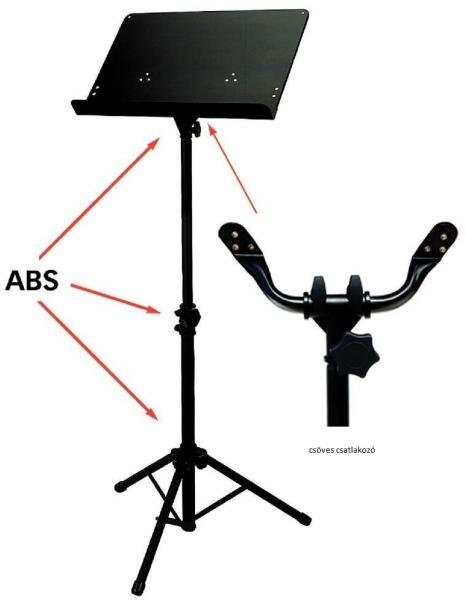 GEWA 900745 Nagyzenekari Kottatartó - Fekete fém össz ecsukható tömör lemez, levehető, cső-csatlakozóval magasság 67 - 120 cm ABS-csatlakozó kotta tartó pult mérete 48,5 x 34 cm súlya 3,8 kg