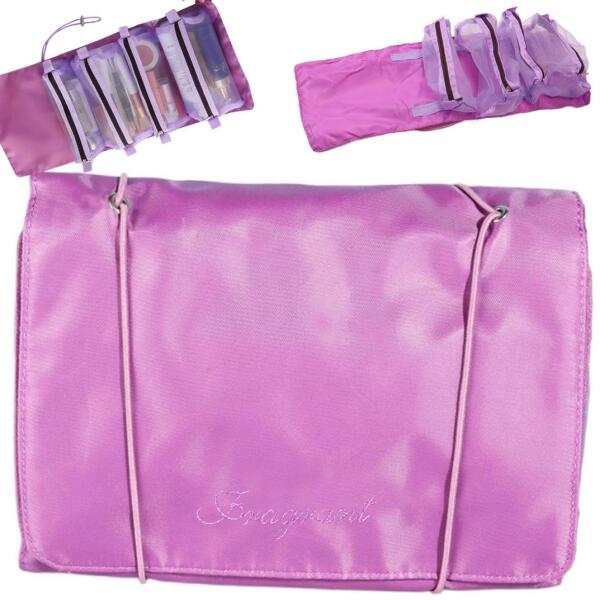 A kozmetikai táska tökéletes megoldás a kozmetikumok rendszerezésére . Az utazásszervező minden bizonnyal minden kozmetikumot, például púdert, zsírkrétát, rúzst és egyéb kiegészítőket befogad. Kis méretének köszönhetően becsomagolva tökéletes női utazótáskának. A szervező 4 tágas kozmetikai tokkal rendelkezik, mindegyik tépőzárral rögzíthető. Eltávolítható