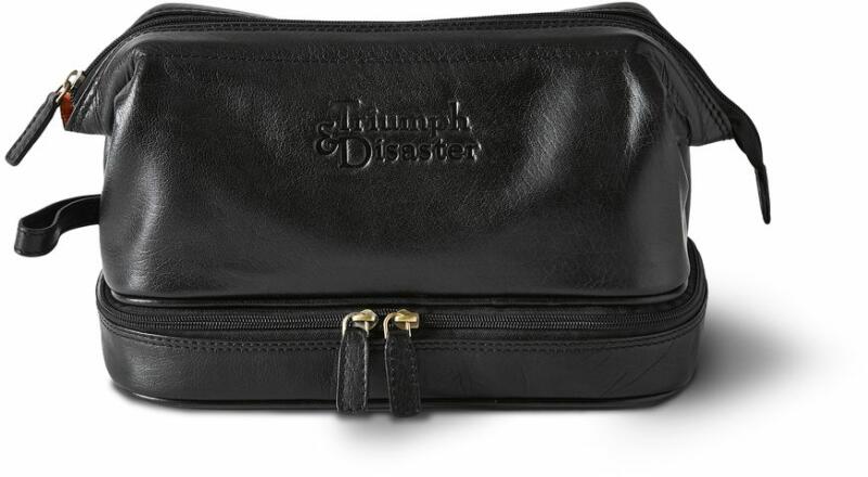 A Triumph & Disaster próbálkozásainak egyik remek eredménye ez a Frank the Dopp klasszikus és praktikus kozmetikai táska. Bőrből készült, vízálló szintetikus béléssel. A szilárd kerek formájának köszönhetően szépen tartja az alakját, a belső zsebek (beleértve egy bezárhatót) szépen rendezettek és átláthatóak valamint a vízálló alap belső szerkezetnek hála k
