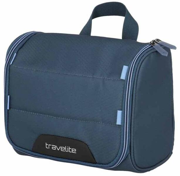 Travelite Skaii kozmetikai táska. Tartós, könnyű anyagú, átgondolt részletekkel rendelkezik. Körbe cipzárral nyitható, fedele akasztó kampóval rendelkezik. Belül cipzáras rekeszt és hálós zsebeket használhatunk, valamint találunk még gumi hurkokat például fogkefékhez. Könnyen tisztítható. Súlya 0,2 kg. Űrtartalma 5 l.