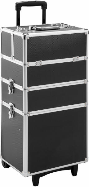 A nagy, univerzális tectake kozmetikai koffer kiváló kivitelezéssel, merevített gömbölyített sarkakkal és megerősített vázzal magaslik ki. Nagy tárhelyet kínál, és az átlátható elrendezése miatt sok mindenre használható. Népszerű választás professzionális kozmetikai kofferként vagy kereskedői bemutatókon. A táska gumikerekekkel és teleszkópos fogantyúval van ellá