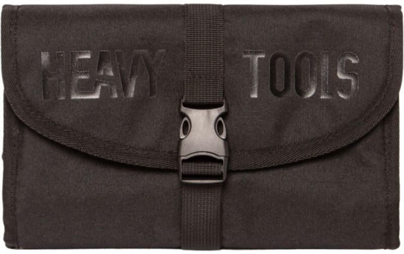 Férfi összecsukható neszeszer, cipzáros/csatos záródással, elején nagy, nyomott márkajelzéssel, rendszerezőkkel, cipzáros zsebekkel. Kinyitvan kampóval felakasztható, utazáshoz, kempingezéshez ideális. Méretek: 25x18x3 cm.