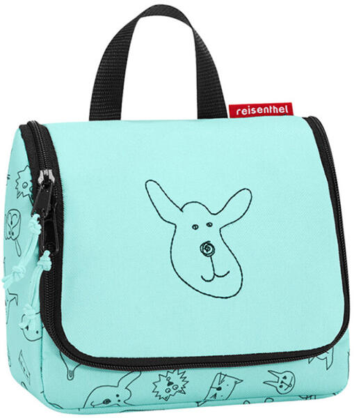 Reisenthel toiletbag S kids fiú kozmetikai táska. Belül fő hálós rekesz 3 tartóval, 1 cipzáras zsebbel, rekesszel és rugalmas tartóval. Elöl nagy, varrott állatszimbólum. Anyaga: prémium minőségű, szakadásálló poliészter, vízlepergető. Praktikus, jól pakolható kis méretű. Plusz: névtábla belül. Térfogata 1,5 l. Méretek (szélesség x magasság x mélység) 18,5 x 16