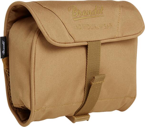 Brandit kozmetikai táska. Tárolhat benne kozmetikai és higiéniai cikkeket és egyéb dolgokat. Anyaga poliészter 600DEN. 1 cipzáros zseb, 2 hálós zseb rugalmas szalaggal. Méretek: Magasság 13 cm x szélesség 16 cm x mélység 5 cm. Anyag: 100% poliészter 600DEN. Előnyök: társ napi használatra, méret, belső rekeszek, egyszerű.