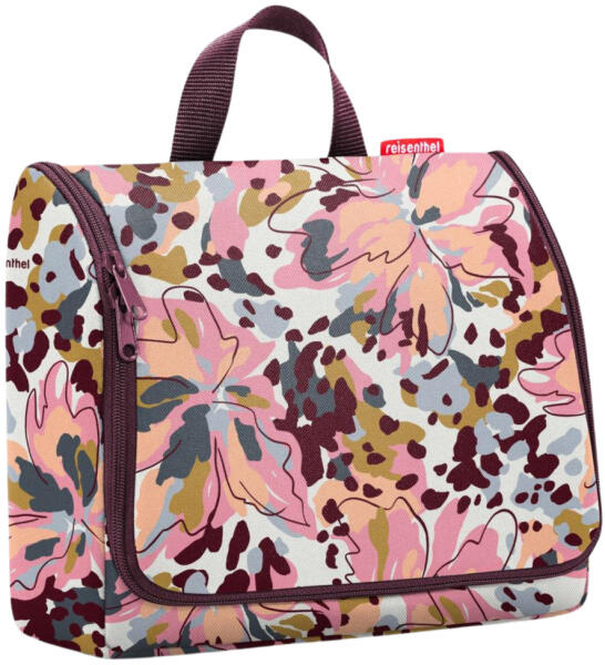 Reisenthel toiletbag. Női kozmetikai táska nyaraláson és otthoni használatra. Főrekesz két cipzárral. Belsejében van: három cipzáras zseb, hálóval, rekesszel és 4 elasztikus tartóval. Anyag: prémium minőségű, szakadásálló poliészter, víztaszító. Külső méretek (szélesség x magasság x mélység): 28 x 23 x 10 cm. Űrtartalma: 4 l.