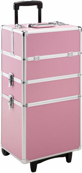 A nagy, univerzális tectake kozmetikai koffer kiváló kivitelezéssel, merevített gömbölyített sarkakkal és megerősített vázzal magaslik ki. Nagy tárhelyet kínál, és az átlátható elrendezése miatt sok mindenre használható. Népszerű választás professzionális kozmetikai kofferként vagy kereskedői bemutatókon. A táska gumikerekekkel és teleszkópos fogantyúval van ellá
