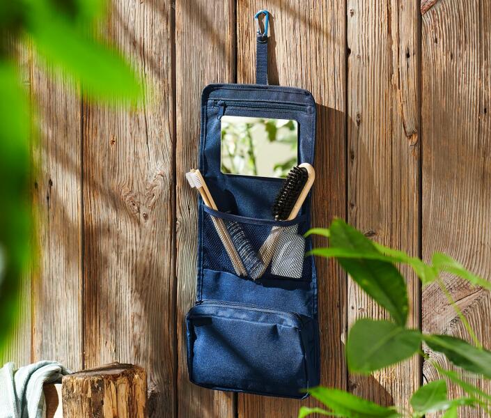 Toiletbag divatos megjelenésű kozmetikai táska rendkívül kényelmes rövidebb utakon egy nagy cipzáros fő rekesz belül 4 kiegészítő zseb további hálózseb cipzárral az elülső oldalon 2 cipzáras zsebbel a fedél + tépőzáras tükör felül hurok akasztásra anyaga: víztaszító prémium poliészter Szé:23 x Ma:20 x Mé:10 cm űrtartalma 3 l