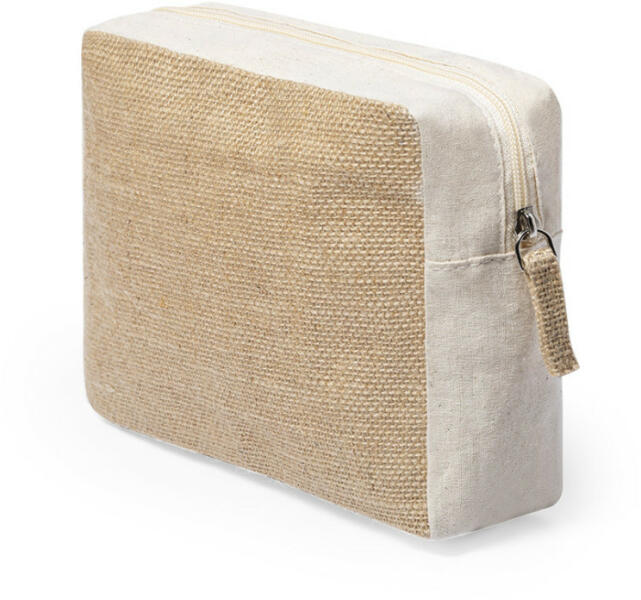 Neszeszer, kozmetikai táska pamut és laminált juta anyagokból. Természetes alapanyagú textíliákból készült ez a stílusos kis cipzáras táska, amit magaddal vihetsz bárhová. 20×15×6 cm