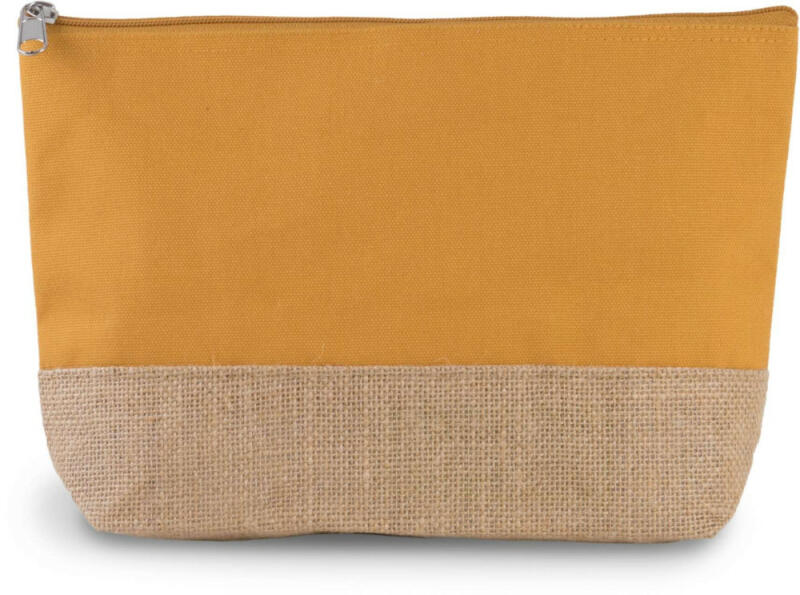 Kimood nagy cipzáras piperetasak pamut és juta anyagból, Pamutvászon tasak kontrasztos, laminált, természetes juta alappal Cipzáras záródás A hozzáillő KI0235 bevásárlótáskával párosítható STANDARD 100 by OEKO-TEX® N° CQ 1164/1 IFTH tanúsítvánnyal UMagasság (A) 18Szélesség (B) 28Mélység (C) 6 KEZELÉSI ÚTMUTATÓ