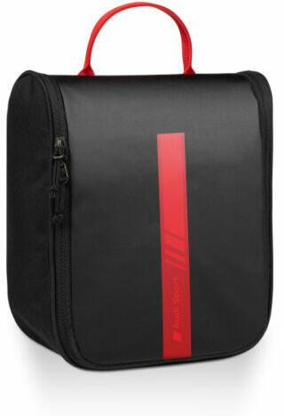 AUDI SPORT PIPERE TÁSKA , A GYÁR ÁLTAL FORGALMAZOTT TERMÉK. Az Audi Wash Bag rengeteg helyet kínál a legfontosabb kozmetikumok számára. A praktikus, tárolható akasztónak köszönhetően mindig kéznél vannak a dolgaid, még útközben is. A különböző zsebekből, köztük egy cipzáras zsebből álló belső elrendezés is áttekinthetővé és kezelhetővé teszi a táskát minden