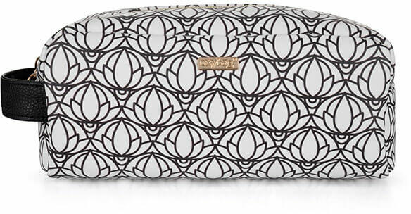 Elegáns, fekete-fehér mintájú, kisebb méretű kozmetikai táska, akár utazáshoz is. A cipzáras, egyterű neszesszer alkalmas kozmetikai cikkek és sminkeszközök, valamint kisebb méretű pipere tárolására. Külső oldalán kézifül található. Anyaga: textil. műbőr. Mérete: 21x9x9cm. Oxy Lady Kollekció: Black & White