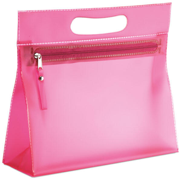 600D poliészter kozmetikai táska az oldalán cipzáras zsebbel. TPE belső borítással.