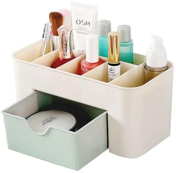 Kozmetikai rendszerező, sminktároló 3 ÁTLÁTSZÓ FIÓK – a rendszerező átlátszó anyagból készült, melynek köszönhetően jól látható, hogy mi van benne, így gyorsan megtalálhatja a tárgyat, hogy elérje azt. 3 azonos méretű átlátszó fiókkal rendelkezik . FELSŐ RÉSZ - ráadásul a felső rész szegmensekre van osztva, melyekben a kozmetikumokat a helyhez igazíthatod. Ak