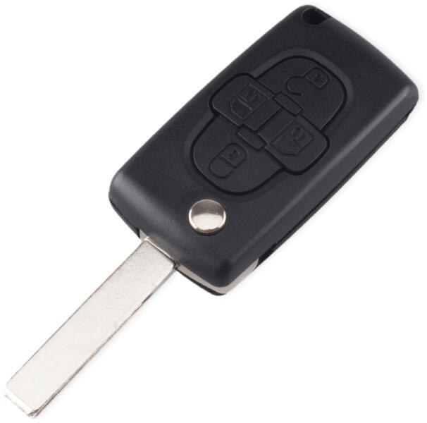 Citroen bicskakulcsA Citroen bicskakulcsok gyakori hibája, hogy a gombok kikopnak kilyukadnak, a kulcsszár pedig nehezen nyílik ki. Erre nyujtanak megoldást bicskakulcs házaink. A kulcsházba átlehet tenni a régi elektronikát, illetve a kulcsszárat is. A kulcs ezután újra úgy fog működni mint a gyáriA bicskakulcs ház három nyomógombos, NYIT, ZÁR és TOLÓAJTÓK gombokkalA hátol