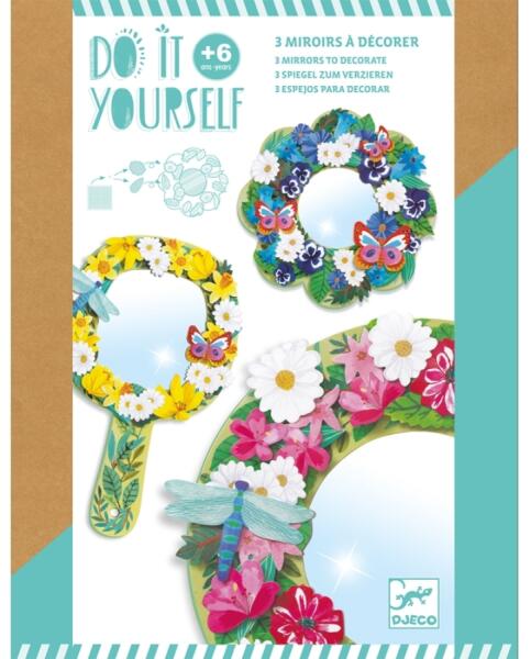 Virágkoszorúval díszíthető akril tükrök. Virágkoszorúval díszíthető akril tükrök. Kreatív készlet 3 egymáshoz illő tükör a díszítéséhez. A vastag habszivacs matricák segítségével a gyermek felragasztja a különböző virágdíszeket. Rétegről rétegre megjelenik a díszítés, és a tükröket szép virágkoronákként ékítik. Ezután a feldíszített tükrök deko