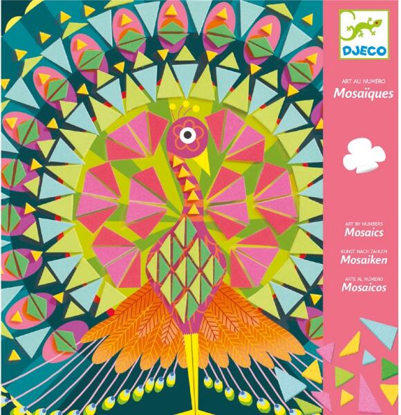 Mozaik kirakás háromszögekből. Páva és bagoly mozaikkép készítés. Eredeti mozaikozó tevékenység, amely lehetővé teszi a gyermekek számára, hogy háromszög alakú darabokkal dolgozzanak. A füzetben található utasításokat lépésről lépésre követve a gyermek óvatosan felragasztja a habszivacs alapú színes háromszögeket a táblákra, hogy elkészítse a páva és a bag