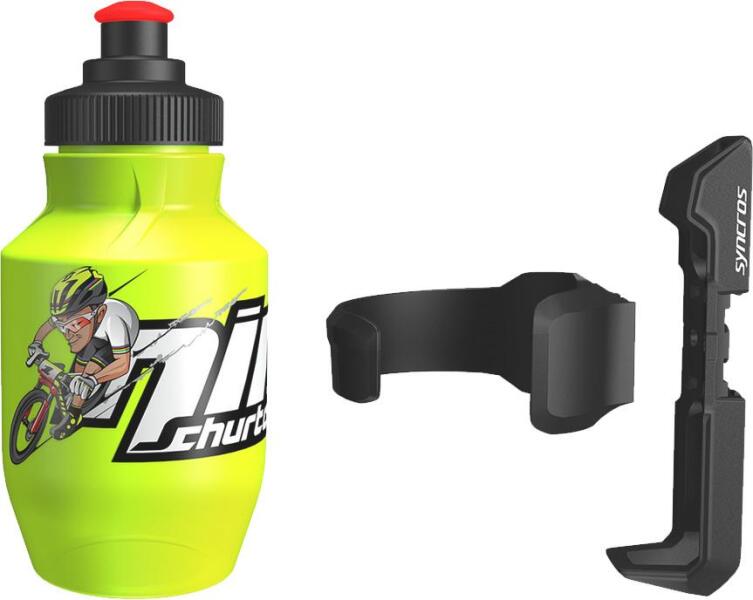 Gyerek kulacs, kulacstartóval. Űrtartalom: 0,3 liter. Rugalmas és tartós.