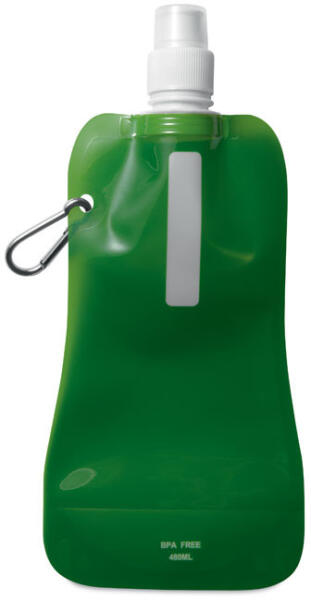 Összehajtható vizes palack BPA-mentes PET műanyagból. Alumínium karabinerrel. Űrtartalom: 480 ml. Szivárgásmentes.