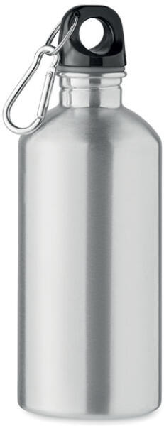 Szimplafalú palack újrahasznosított rozsdamentes acélból (90% újrahasznosított rozsdamentes acél és 10% rozsdamentes acél), karabinerrel. 500 ml. A szublimációs nyomtatás csak a fehér színű terméken érhető el. Szivárgásmentes.