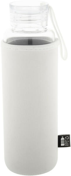 Újrahasznosított üveg kulacs PS műanyag kupakkal, szilikon hordszíjjal és RPET neoprén borítással, 550 ml. Nem alkalmas szénsavas italok tárolására.