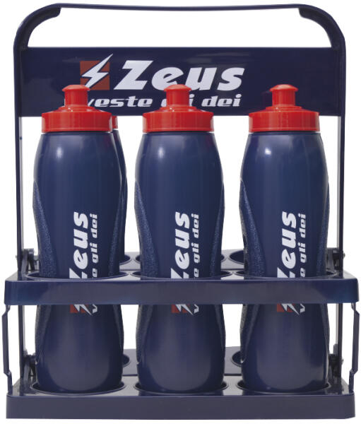 Szabvány méretű kulacstartó, 6 db kulaccsal. A kulacs profi anyagból készült, nem törik, nem csöpög! Kék/piros alapszínben, fehér ZEUS felirattal. Méret: 6 db kulacs Űrtartalom: 750ml/kulacs
