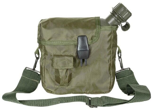 Amerikai kulacs, szögletes, fedéllel, OD zöld, 2 Q levehető és állítható hordozószíjjallevehető fedél klipszes záródássalkis külső zseb horoggal és hurokkal záródó rögzítővel2 hátsó rögzítő klipsz a rögzítésheza palacknyakon rögzített csavaros kupakűrtartalom: kb. 1,89 literMéretek: kb. 25 x