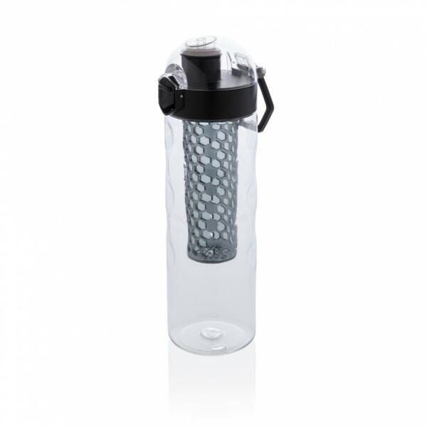 Ízesítse italát kedve szerint! Ez a dizájn palack méhsejt mozaikos formájával könnyen használható akár egy kézzel is. A palack teteje a gomb megnyomásával nyílik. Egy speciális záró mechanizmus akadályozza meg a gomb véletlenszerű megnyomását. Fogóval. A vizespalack tartós és innovatív tritán anyagból készült. Szagtalan, 100% BPA-mentes. Űrtartalma: 700 ml. Bejegyze