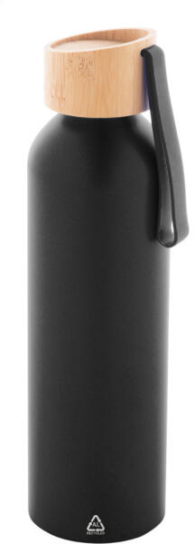 Újrahasznosított alumínium kulacs bambusz tetővel és hozzáillő színű szilikon hordszíjjal, 600 ml.