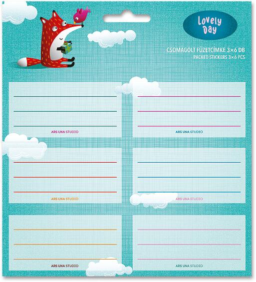 Ars Una füzetcímke 3x6 db-os - Lovely Day Rókás füzetcímke Cuki róka fémjelezte füzetcímkéken felhők láthatóak. Mintája és színvilága miatt fiúknak és lányoknak egyaránt ajánlott. Egy csomagban 3 ív lapon 6 db matrica van, összesen 18 db füzetcímkével. Méret: 16 x 17,5 cm Minta: róka, Lovely Day Gyártó: Ars Una Még több iskolaszer