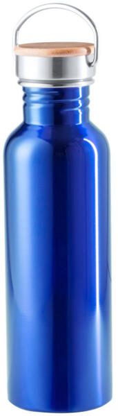 Kék, rozsdamentes acélból készült sportkulacs bambusz kupakkal, 750 ml.