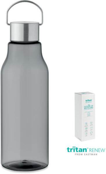 BPA-mentes Tritan Renew műanyag ivópalack rozsdamentes acél fogantyúval ellátott fedéllel. Szivárgásmentes. Űrtartalom: 800 ml. Ez a termék 50%-ban ISCC tanúsított műanyag hulladékból származik. A Tritan Renew forradalmi újrahasznosítási technológiát képvisel, amely az egyszer használatos műanyag hulladékot tartós anyaggá alakítja, ellensúlyozva a fosszilis tüzelőany