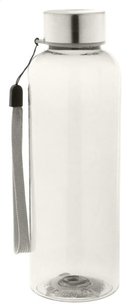 BPA-mentes RPET műanyag kulacs rozsdamentes acél kupakkal és hordszíjjal, 500 ml. Nem alkalmas szénsavas italok tárolására.
