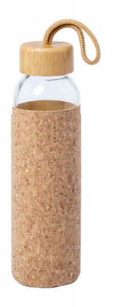 Üveg kulacs természetes parafa borítással, bambusz kupakkal és hordszíjjal, 500 ml. Nem alkalmas szénsavas italok tárolására.
