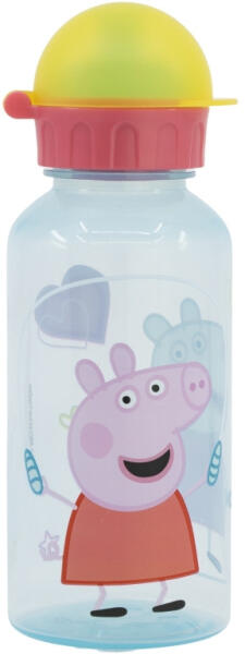 Peppa malac kulacs biztonsági kupakkal 370 ml Peppa malac kulacs biztonsági kupakkal 370 ml . Sok gyermek szereti Peppa malac és barátai történeteit, számukra nagyszerű választás ez a kulacs . Inni a csőr elfordítása után tudnak belőle a gyerekek, ezt a rész egy védősapka óvja a szennyeződéstől. A védősapka a kulacshoz van rögzítve, ami megakadályozza, hogy a gyerekek le