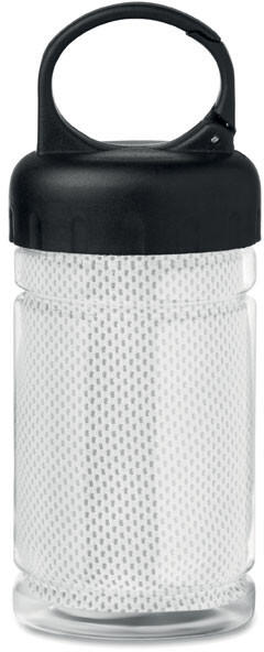 100% poliészter anyagból készült hűsítő törölköző, 300 ml űrtartalmú PET palackkal.