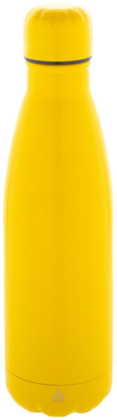 RPET kulacs rozsdamentes acél kupakkal, 600 ml. BPA-mentes. Nem alkalmas szénsavas italok tárolására.
