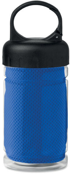 100% poliészter anyagból készült hűsítő törölköző, 300 ml űrtartalmú PET palackkal.