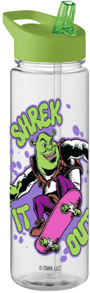Műanyag kulacs fogantyúval Shrek motívumokkal. Űrtartalom: 0,6 l.