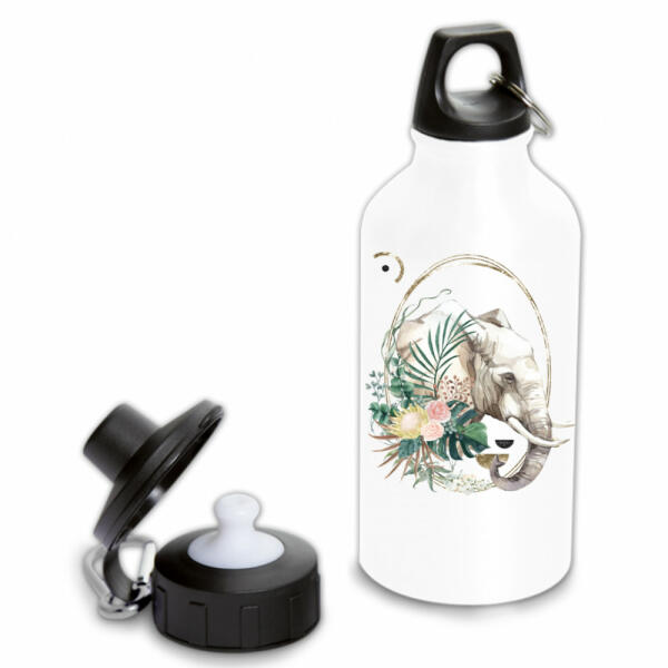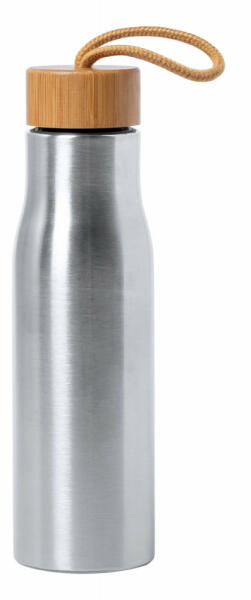 Palack formájú kulacs, bambusz fedéllel és hordszíjjal, 550 ml.