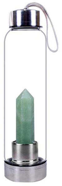 Prémium Aventurin ásvány kulacsA aventurin jótékony hatásai:Az önbecsülés köve. Rámutat belső értékeinkre, megmutatja, hogy mi tesz boldoggá. Az aventurin ásvány megerősíti, a vezetői képességet és a döntéshozatalt. Erősíti az empátia érzését. Fokozza a teljes harmónia érzést a testben. Saját kristályos víz elkészítése:Az üveget és a kristályt első haszn