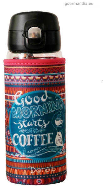 380 ml űrtartalmú, kávés/teás üvegpalack kifordítható neoprén huzattal, egykezes, gyorszárású kupakkal. Az üvegkulacs: Mérete: 20,5 x 7,2 cm, 380 ml űrtartalom Természetes anyagokból készült: homok, mészkő és nátrium-karbonát. Nem tartalmaz káros lágyítószereket, szerves vegyületeket vagy BPA-t. Az üvegpalackba 0°C – 80°C fok közötti hőmérsékletű folyadék t