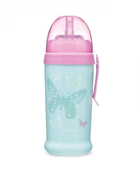 A praktikus, színes palack szilikonból készült, ki nem önthető szívószállal 12 hónaposnál idősebb gyermekek számára készült, akik már tudnak önállóan inni. Ideális utazáshoz vagy sétához. A puha szilikon szívószál biztonságos az érzékeny baba ínye számára. A szívószálban lévő membrán megakadályozza, hogy a folyadék kifolyjon, ha a palackot fejjel lefelé ta