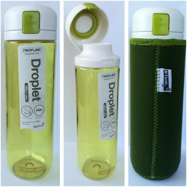 Jól záródó műanyag kulacs, neoprén huzattal, többféle színben.