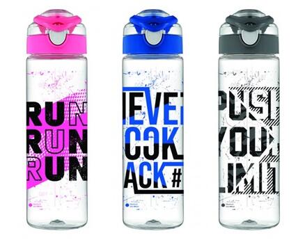 450 ml műanyag átlátszó kulacs, csuklóra akasztható pánttal. Vegyes színekben, szín nem választható!