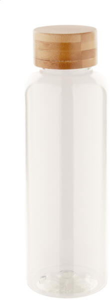 BPA-mentes RPET műanyag kulacs bambusz kupakkal, 500 ml. Nem alkalmas szénsavas italok tárolására.